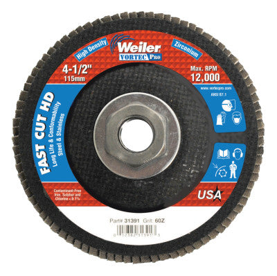 Weiler® 4-1/2" Vortec Pro High Density Abrasive Flap Disc, Flat, 31391
